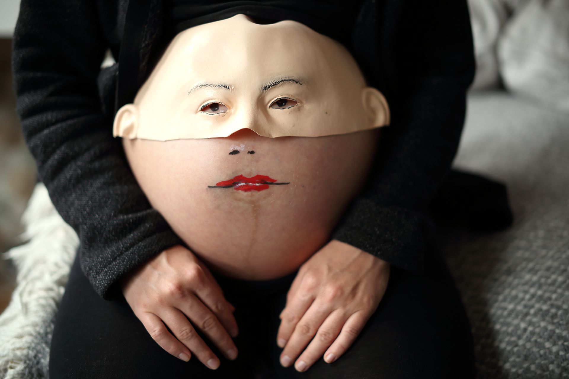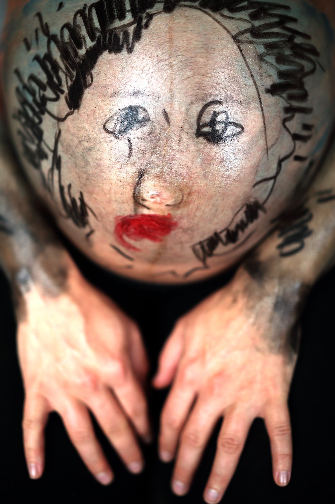 MAMAface, series of photographs by the Berlin based artist Sebastian Bieniek, showing a face-paint on the belly of a pregnant woman.