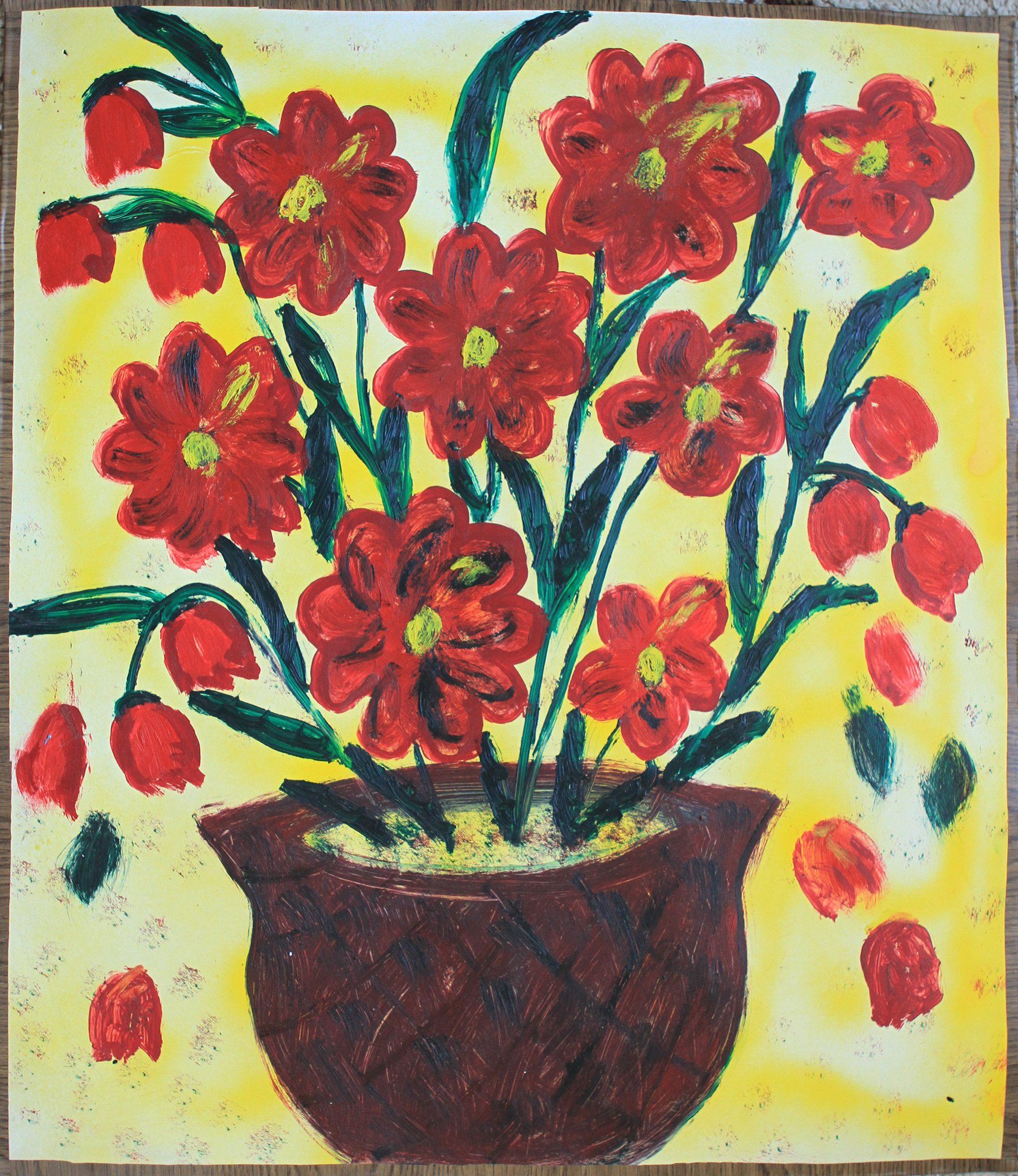 Sebastian Bieniek's mother showing him proudly the plowers that she pained over his photographs in 2012 and that became