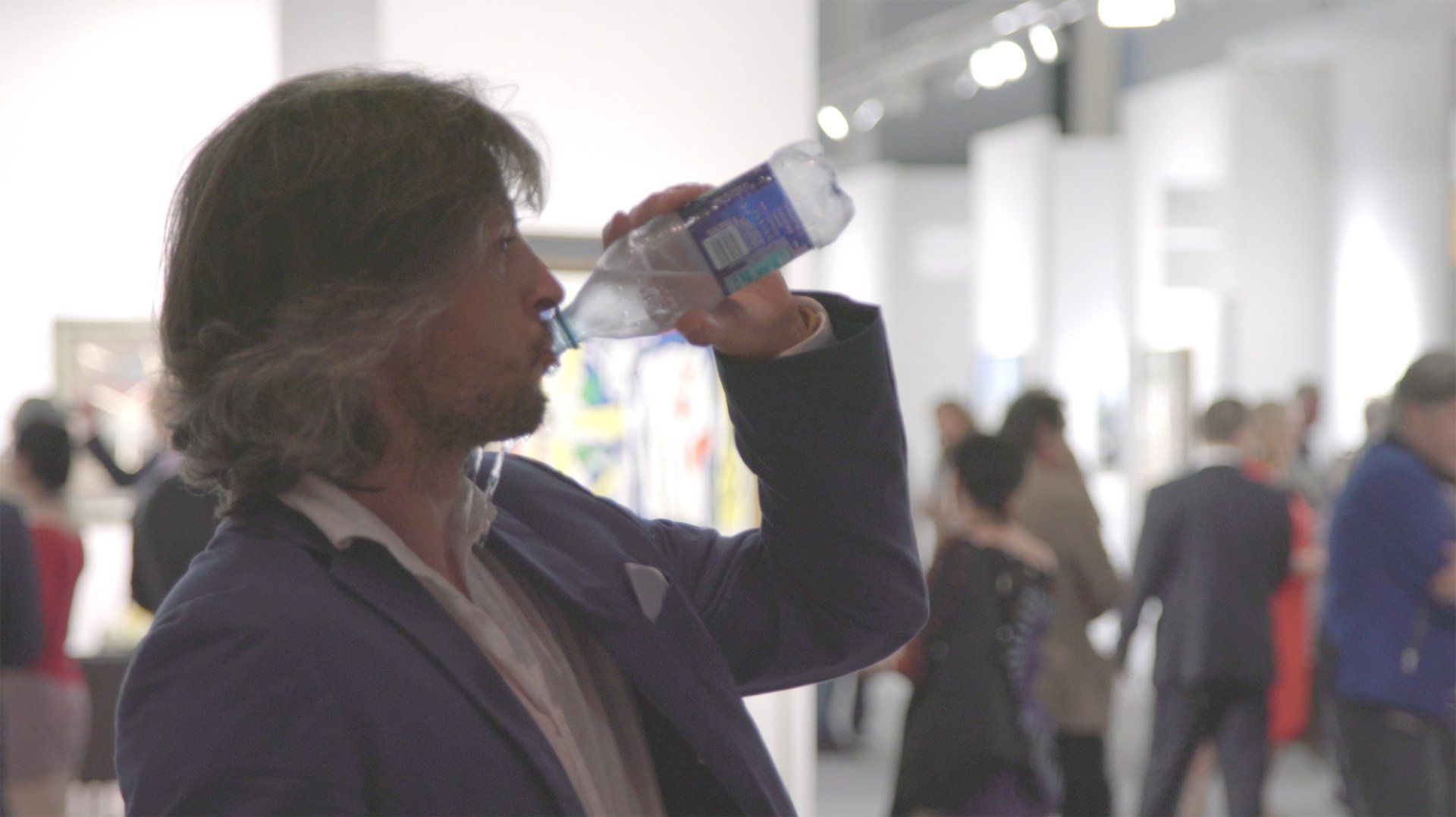 "Viva sin Agua", Performance art by Sebastian Bieniek (B1EN1EK), 2016 at the Art Basel Miami art fair in cooperation with the Millerntor Gallery, Hamburg. Drinking water.