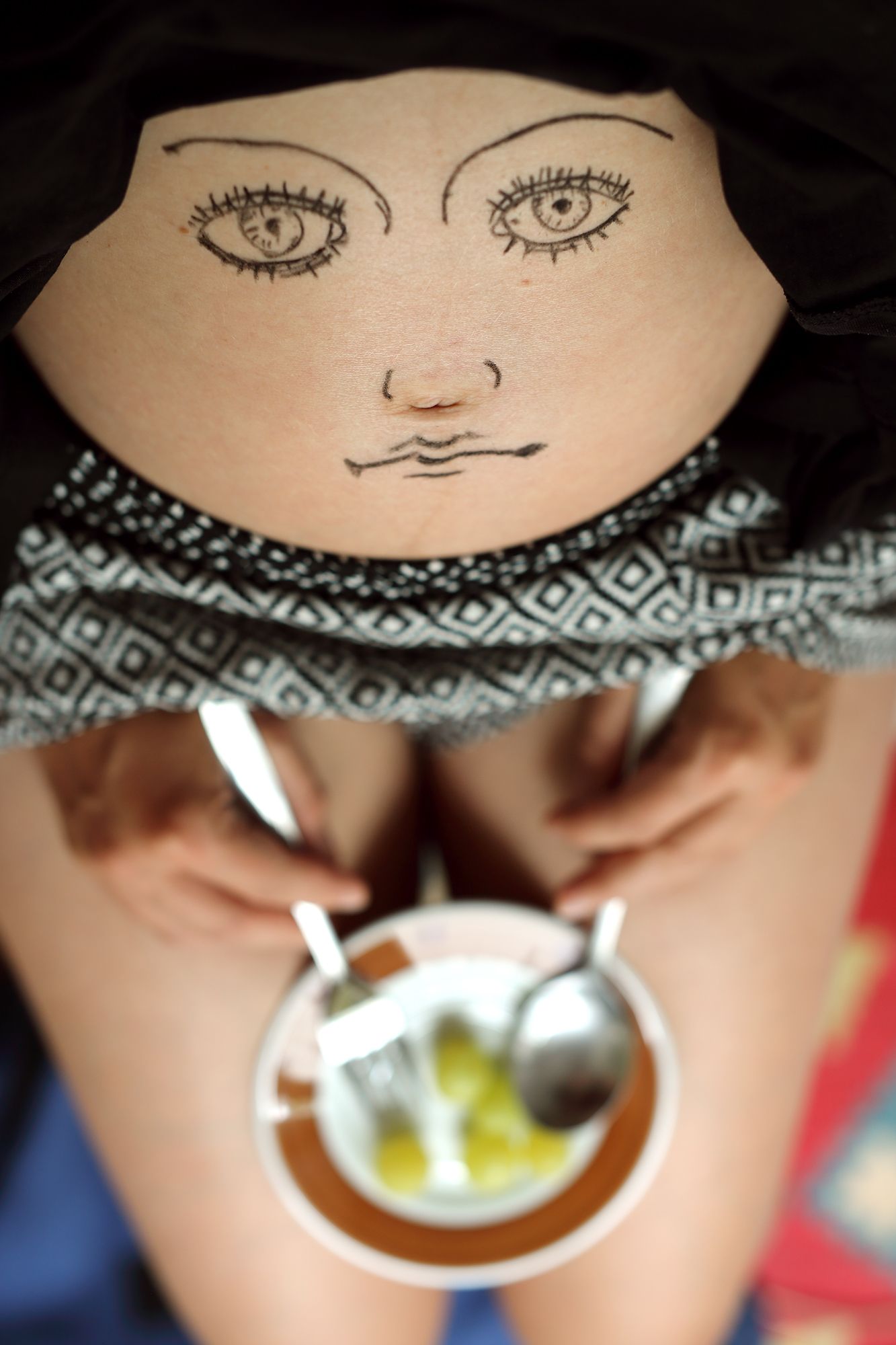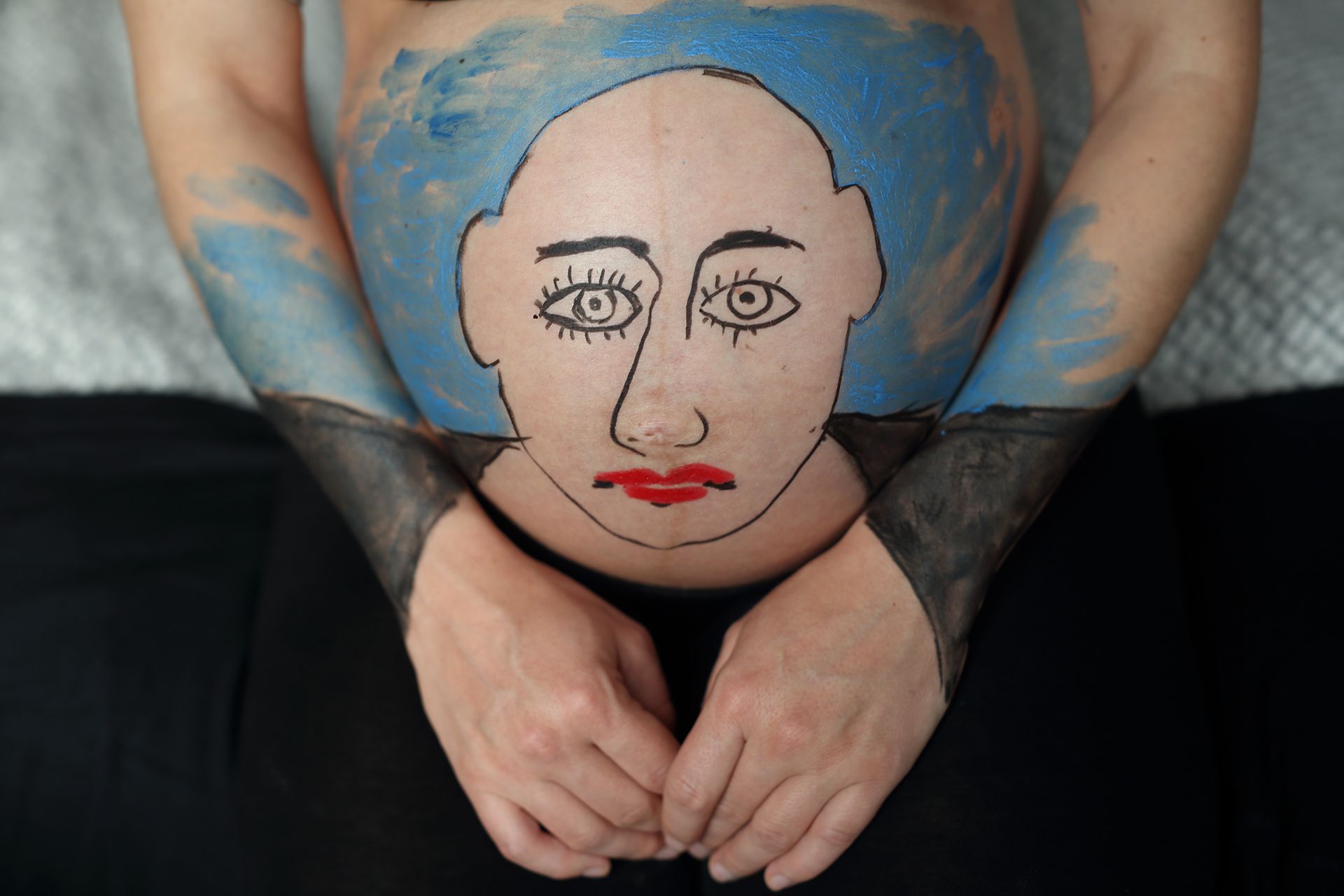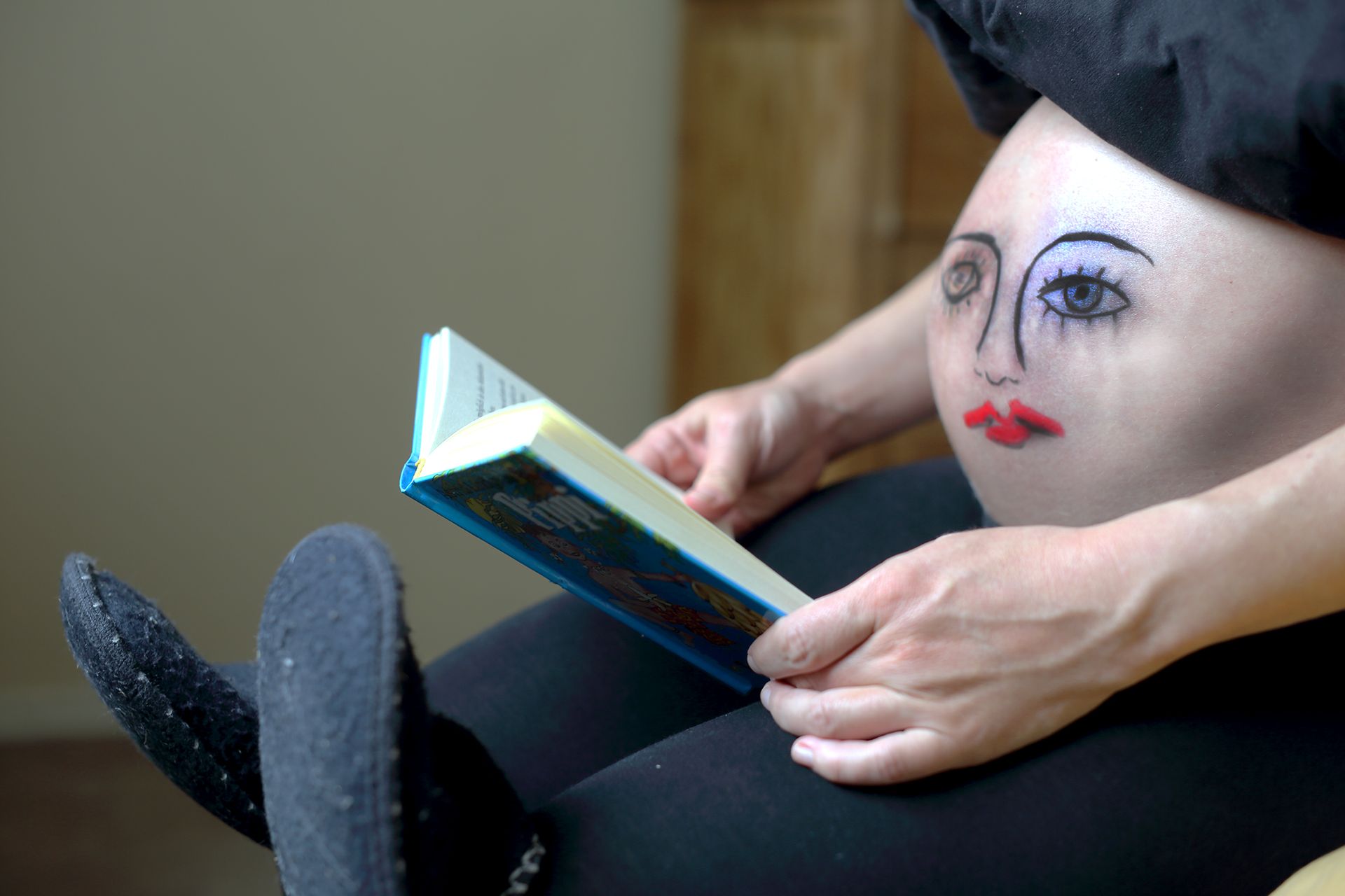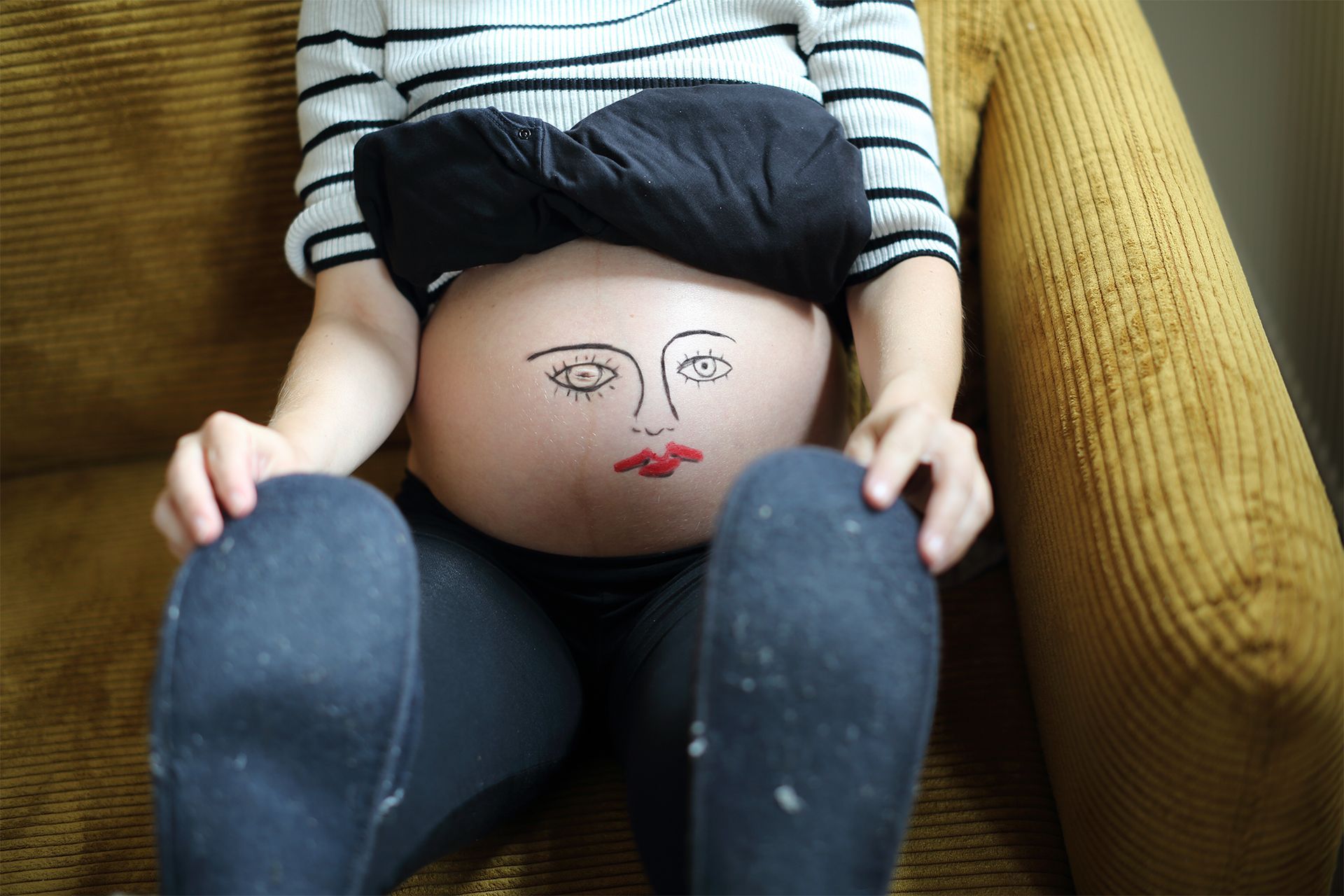 MAMAface, series of photographs by the Berlin based artist Sebastian Bieniek, showing a face-paint on the belly of a pregnant woman.