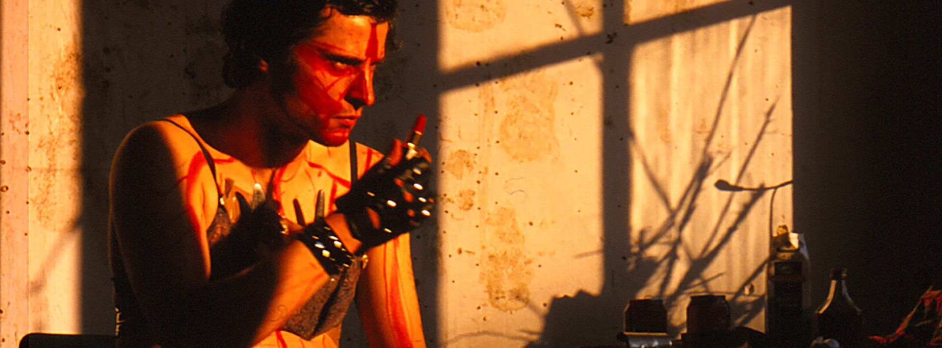 Performance by Sebastian Bieniek in the Sophiensäle in Berlin, 1999 titeled "In Front of the Distance". Artist is walking a distance while the blood is draining, 1999.