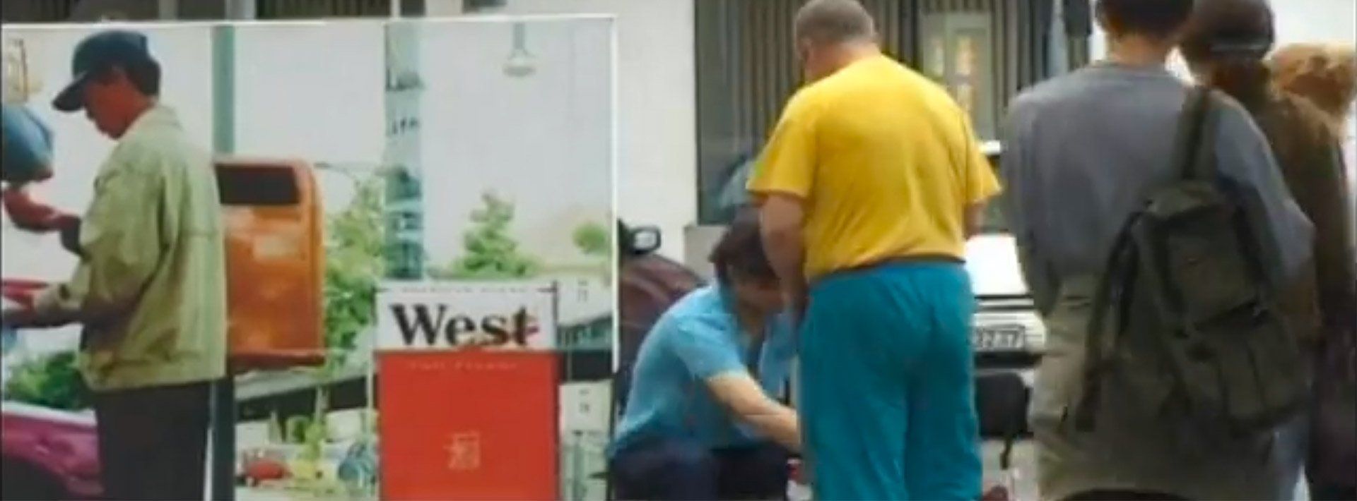 "Import/Export" performance/action and later video with a pseudo advertising poster and in interaction with Vietnamese cigarette sellers. Berlin, Schönhäuser Alle, 2001