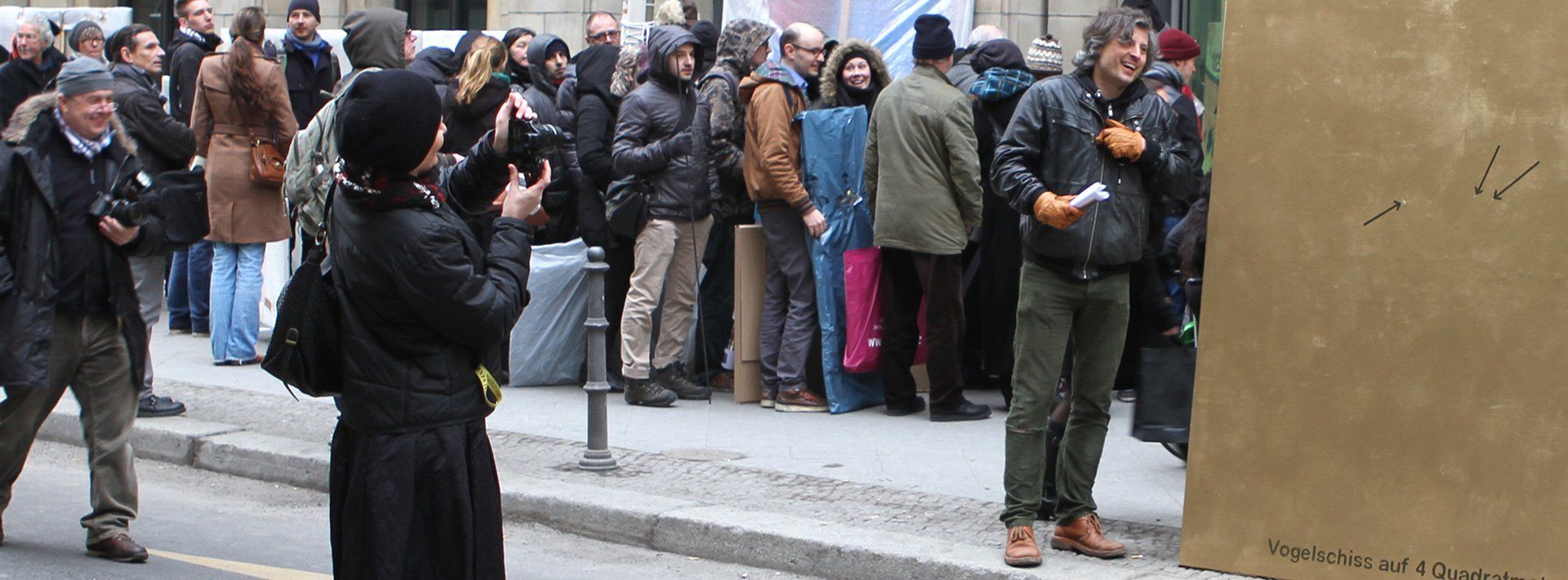 "My Friend Mr. Winker from the Deutsche Bank" ("Mein Freund Hr. Winker von der Deutschen Bank). Deutsche Bank Kunsthalle "Macht Kunst", performance art by Sebastian Bieniek (B1EN1EK), 2013.